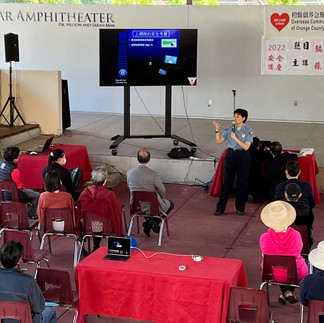 橙縣僑界急難救助協會3月19日在南海岸中華文化中心戶外劇場舉辦「詐騙大觀:實案分享及防詐騙講座」,邀請爾灣市警察局犯罪防治部警佐蘇玲雍、詐騙調查專員特里.柯瓦魯比亞斯(Terrie Covarrubias)擔任主講人,分享詐騙犯罪偵防的第一線實務經驗。當天現場有20位來賓出席、線上有70位來賓遠距參與,一起汲取相關知識、防詐騙之道,以免誤入詐騙份子的陷阱。